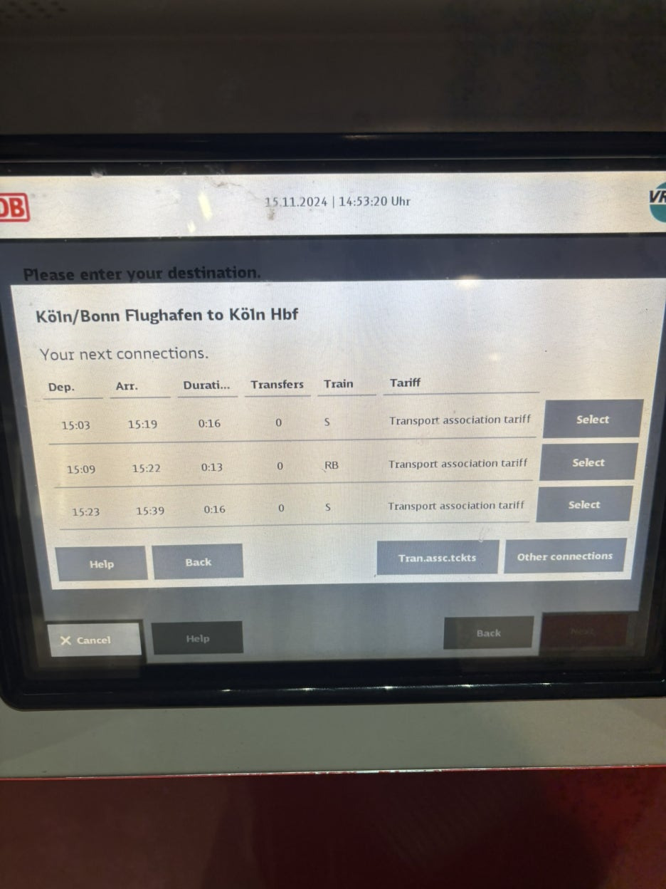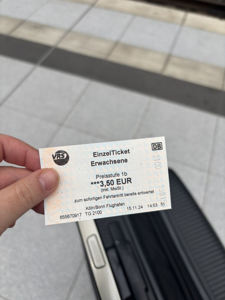 - 쾰른 공항 도착 후, 지하 기차역에서 ‘Köln Hbf’행 티켓 구매 (3.5유로)