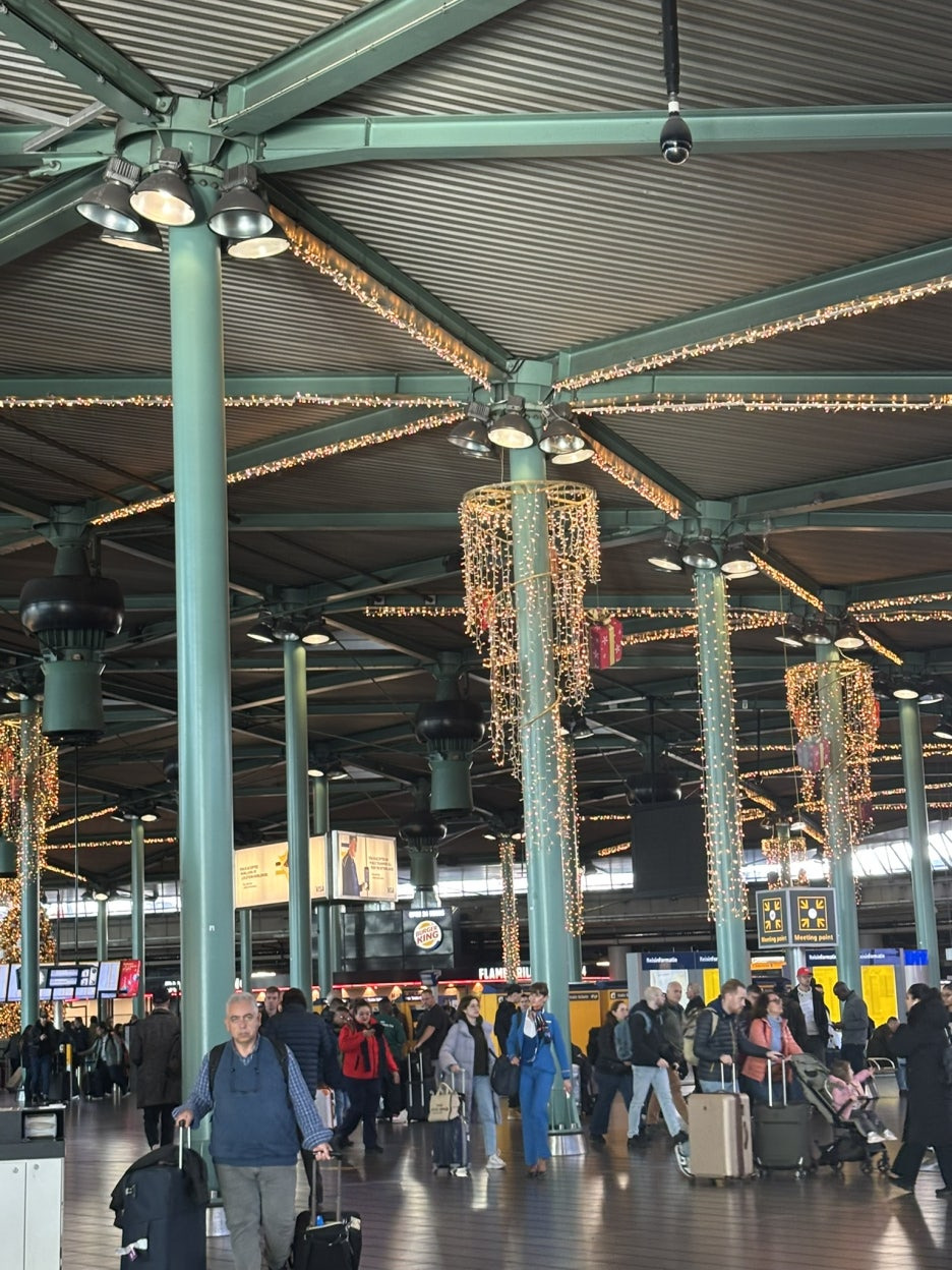 공항을 나서자마자 느껴지는 크리스마스 분위기, 맑은 하늘과는 달리 강풍·우박·비가 갑자기 찾아오는 변덕스러운 날씨는 주의할 필요가 있다. 암스테르담 시내 구경과 플리마켓 방문 후기는 다음 글에서 자세히 소개할 예정!