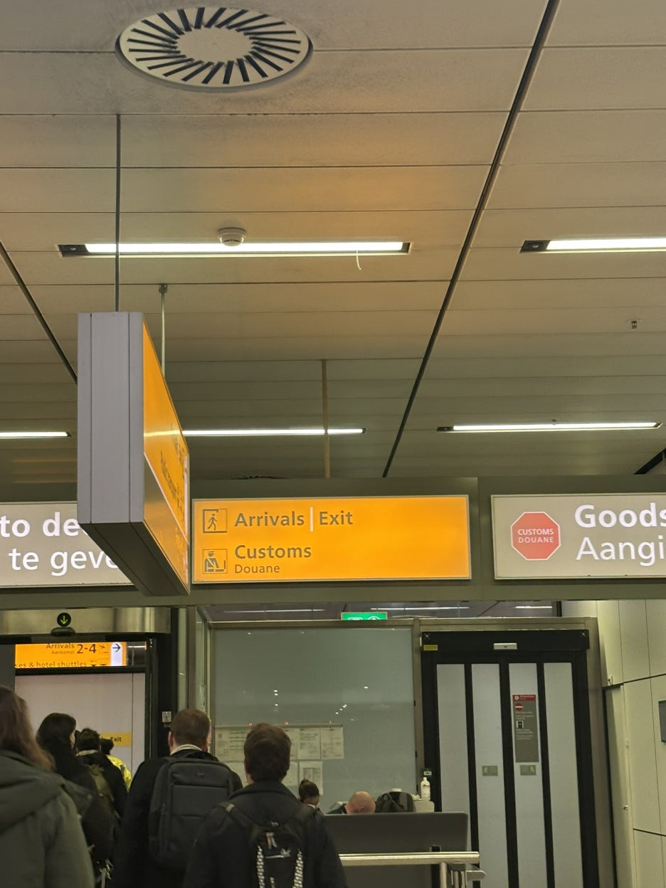스키폴공항 도착 후 입국장은 간단하게 통과 가능하다. 브뤼셀에서 이미 출국심사를 받은 터라 레이오버 국가인 암스테르담에서는 별도의 입국심사 같은건 없었다. 다른 유럽 여행객들 처럼 핸드캐리 짐만 가지고 공항을 나오면 암스테르담 시내 구경이 가능했다. 즉  레이오버 여행자는 별도 심사 없이 공항 밖으로 이동 가능!