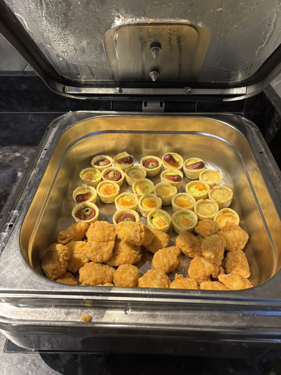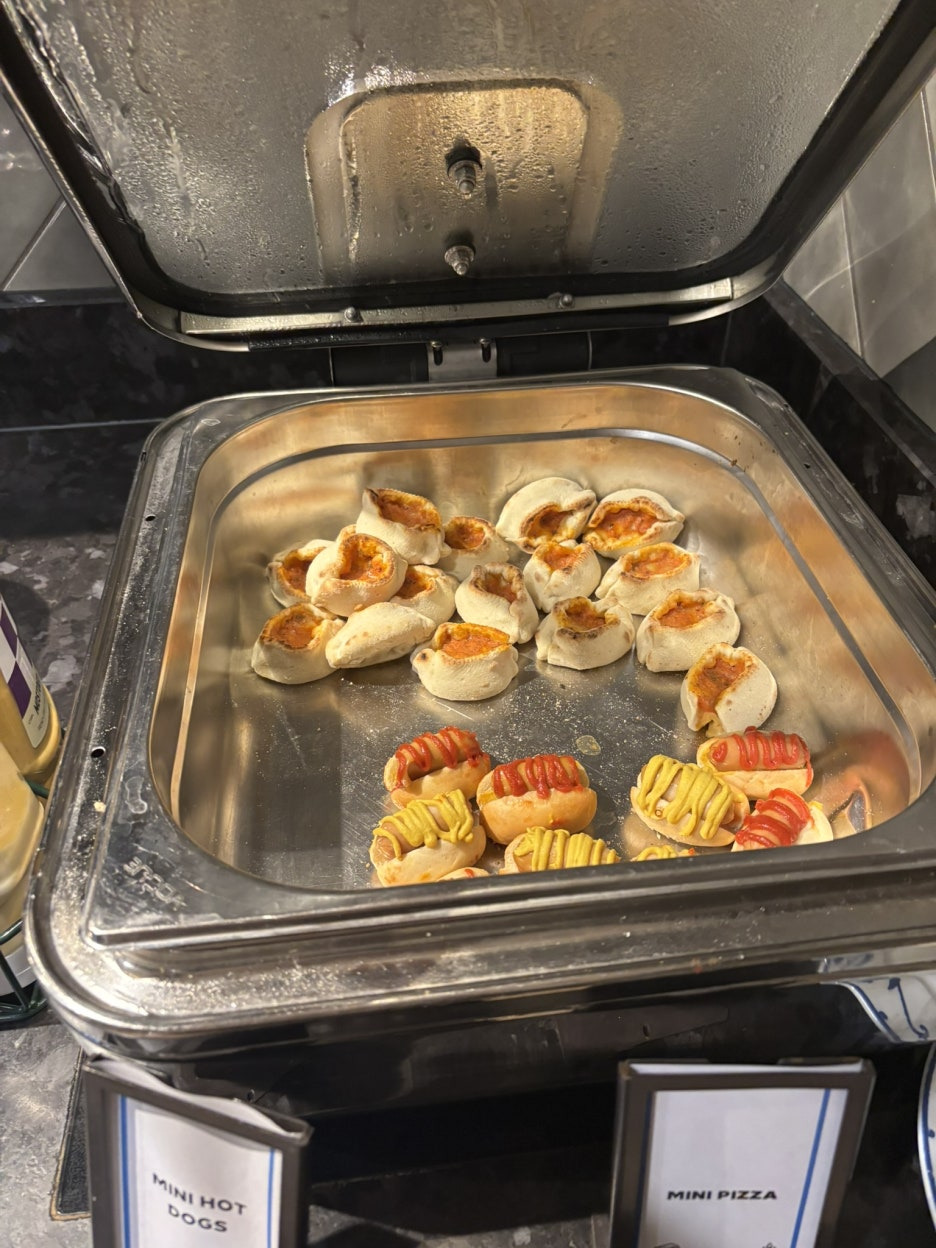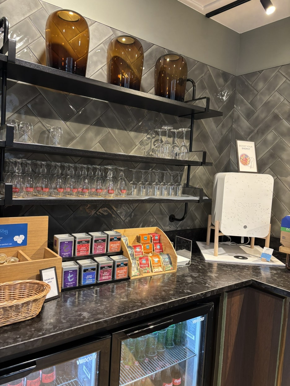 일반적으로 해피아워가 아닌 시간에는 다양한 차와 음료, 간단한 스낵이 준비되어 있었는데 오전시간대는 음료와 아이스크림(슬러쉬)가 메인인것 같았다. 그리고 해피아워시간에는 간단한 식사대용의 음식들이 매번 바뀌어 제공 됨.