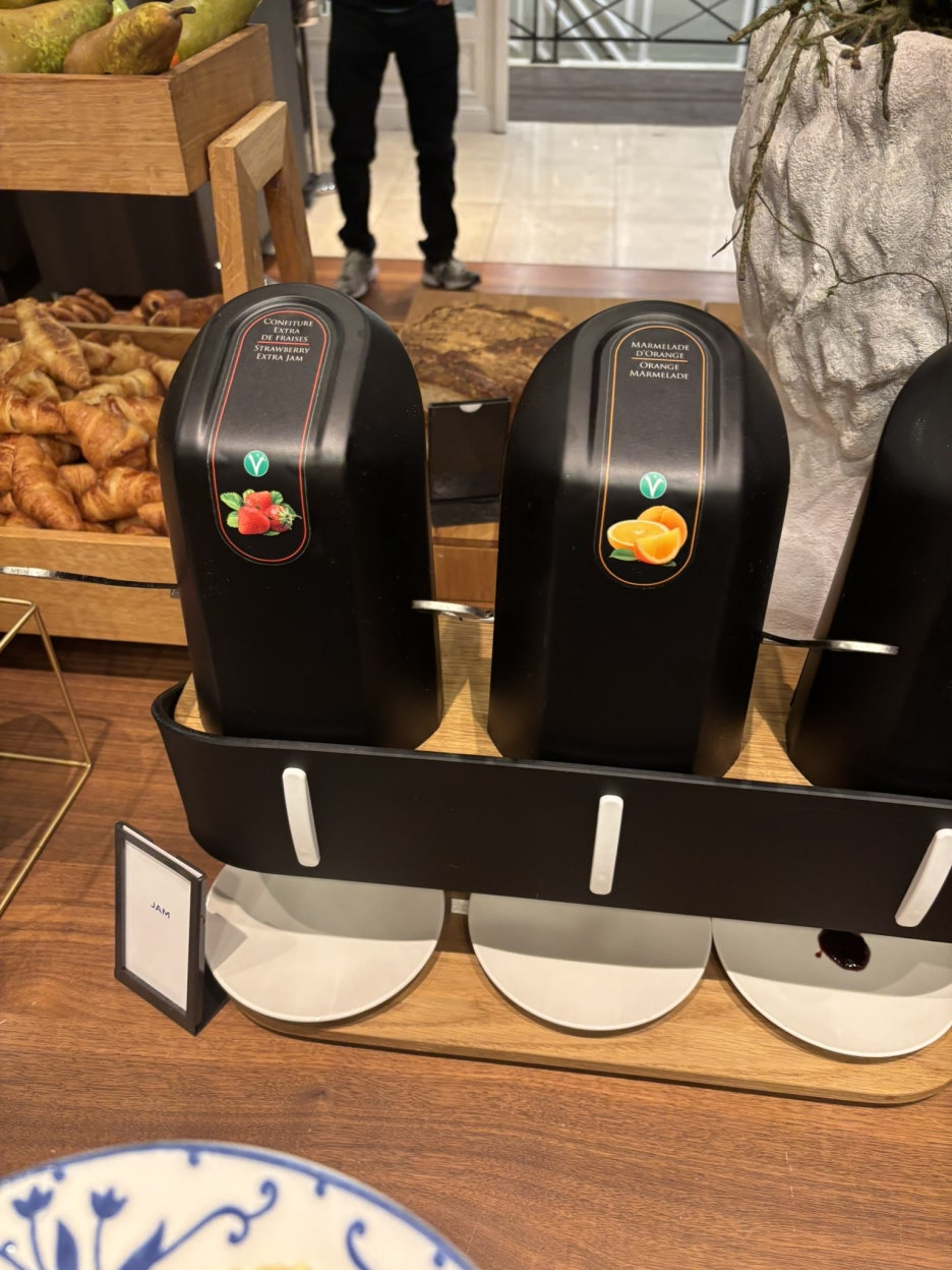 셀프 와플 기계는 이 호텔 조식의 하이라이트라 할 수 있다. 컵에 담긴 반죽을 기계에 붓고 반대 방향으로 돌리면 작동되며, 굽는 데 약 3분 소요된다.