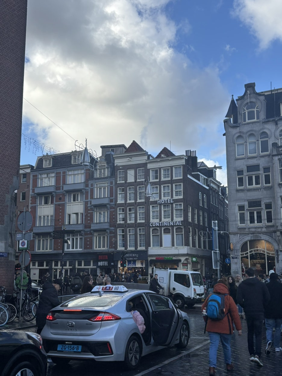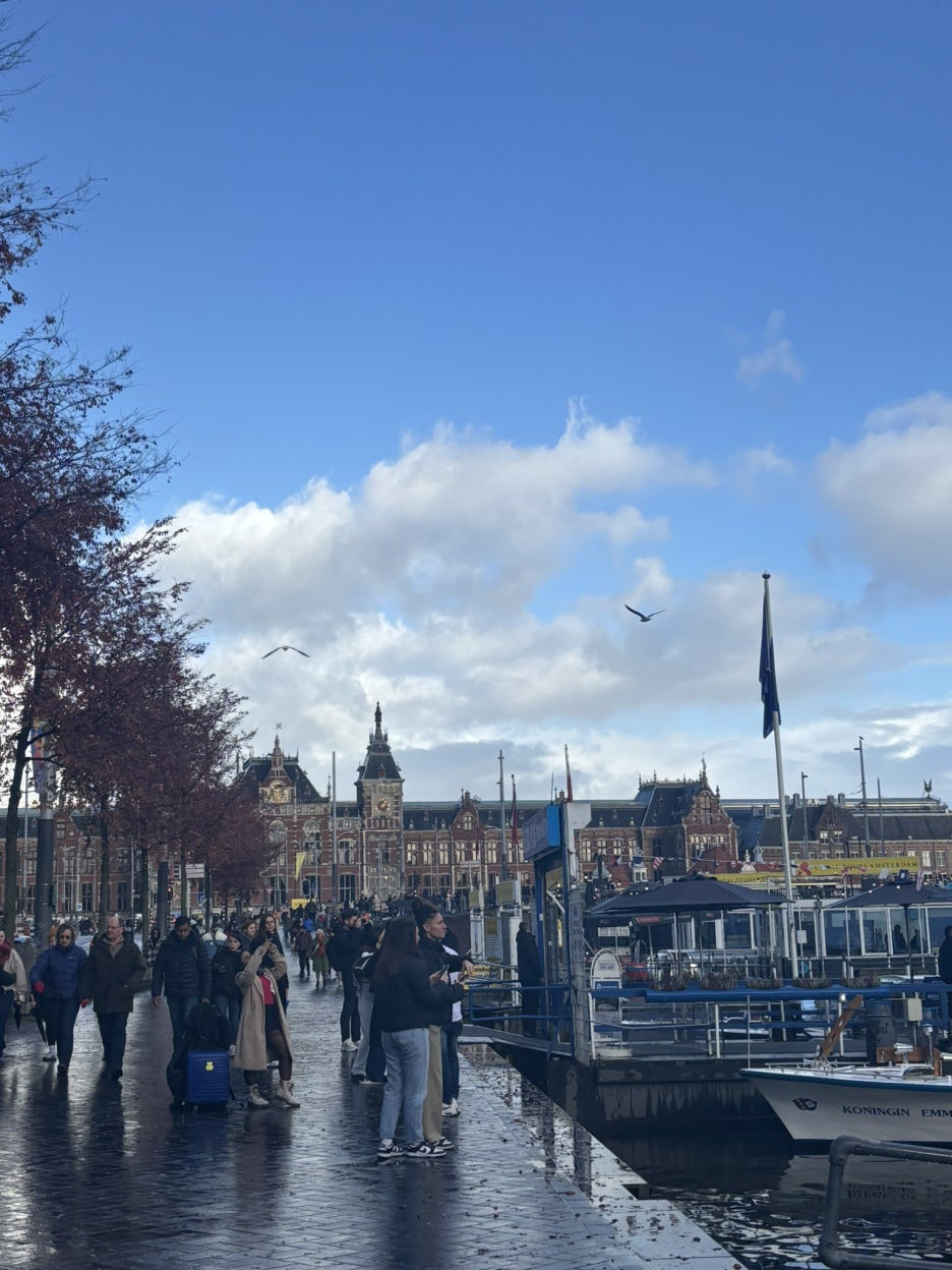 암스테르담은 운하가 유명한 도시인 만큼 항구 주변의 건축물이 눈에 띄었다. 건물과 건물이 딱 붙은 특색있는 건물 풍경, 그리고 변덕스러운 날씨였지만 날이 개었을때 보이는 맑은 하늘과의 조화로운 풍경이 멋있었다.