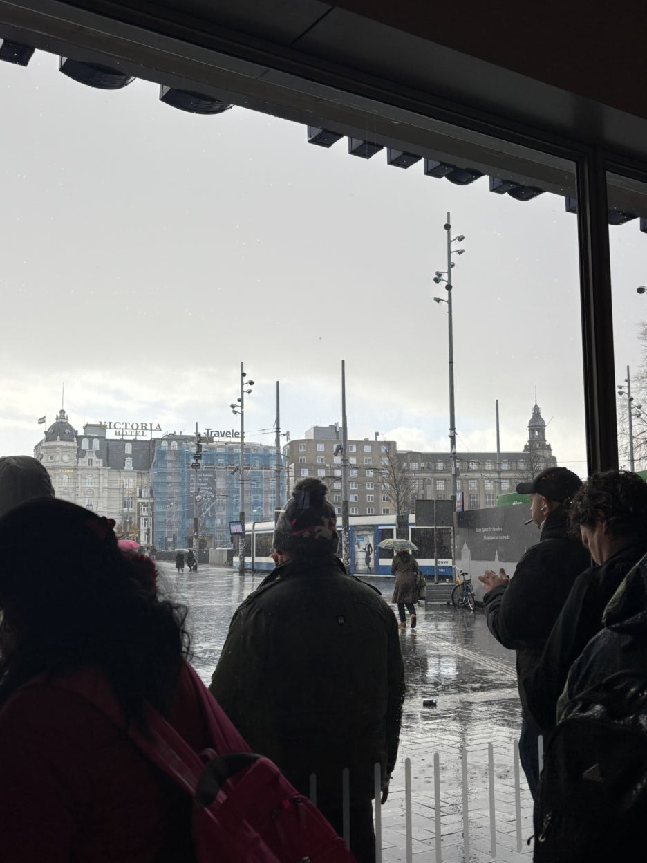 스키폴 공항에서 탑승 후 암스테르담 중앙역 으로 도착했는데... 갑자기 폭우가 쏟아져 30분 정도 대기했다. 유럽 날씨가 워낙 변덕스러워 우산 준비는 필수이다. (참고로 나는 캐리어에 우산을 넣어버려서 비와 우박을 그냥 맞고 다녔다 ㅎㅎ...진정한 유럽 감성)