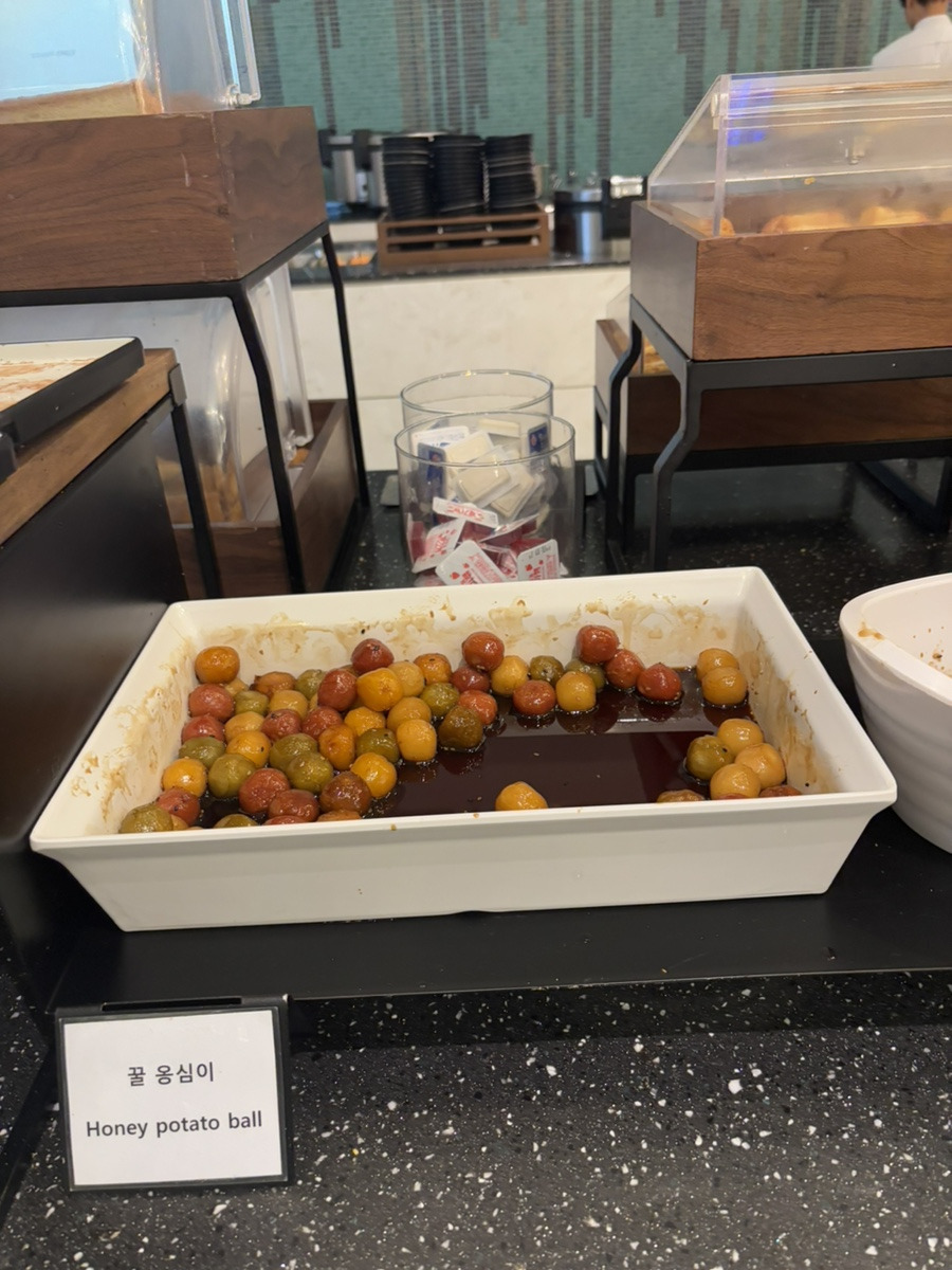 디저트 코너는 떡과 케이크 씨리얼 등이 있었는데 떡은 아이스크림 맛이 나는 요즘 유행하는 크림떡이어서 아주 맛있게 먹었다.