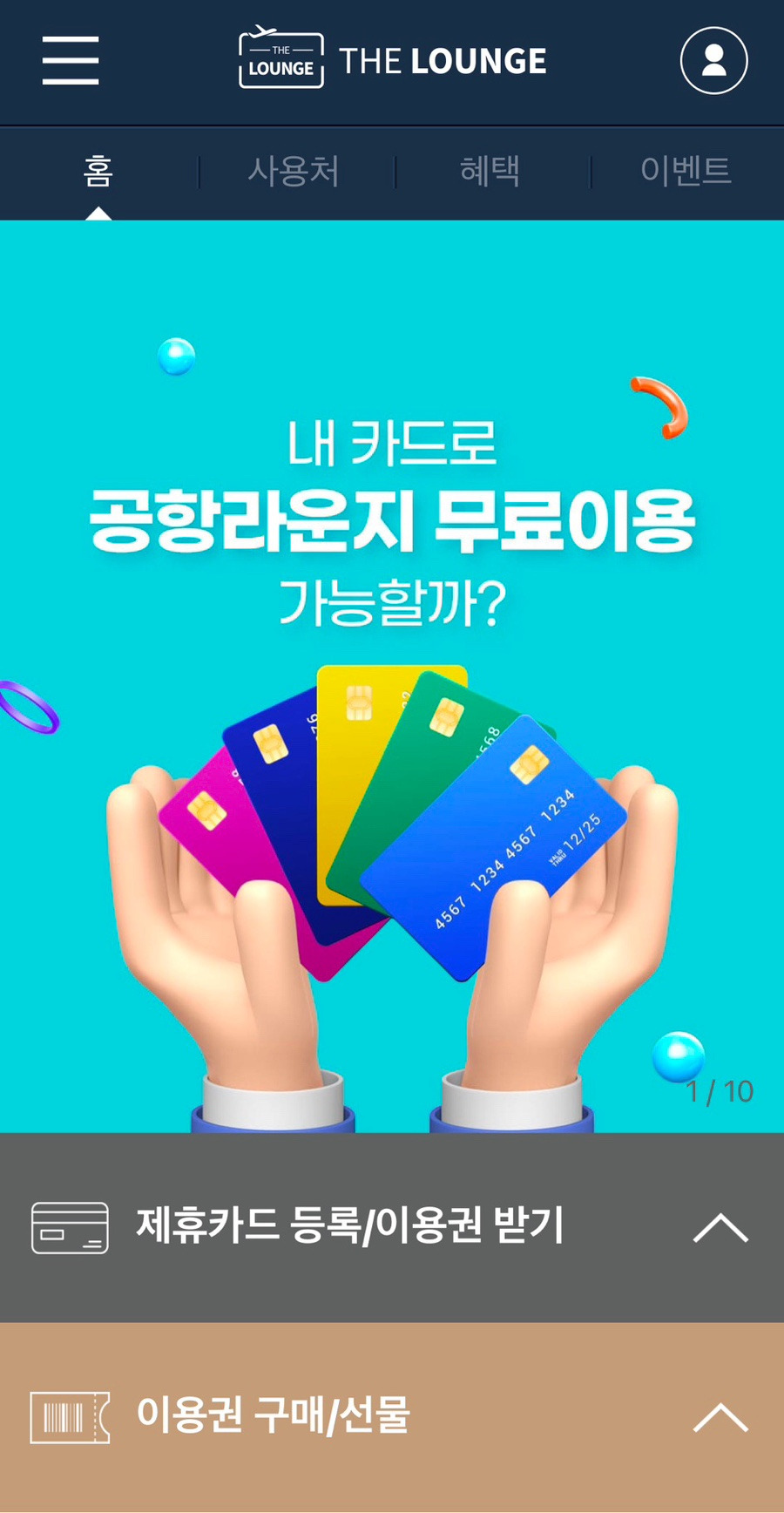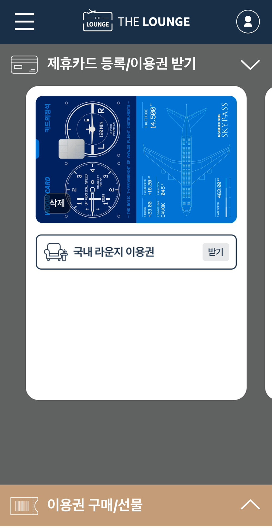 참고로 인천공항 제 1터미널 라운지는 카드 실물을 보여주면 입장이 가능했지만, 제2터미널 마티나라운지는 '더라운지' 어플을 통해서 이용권을 다운 받아야 입장이 가능했다.