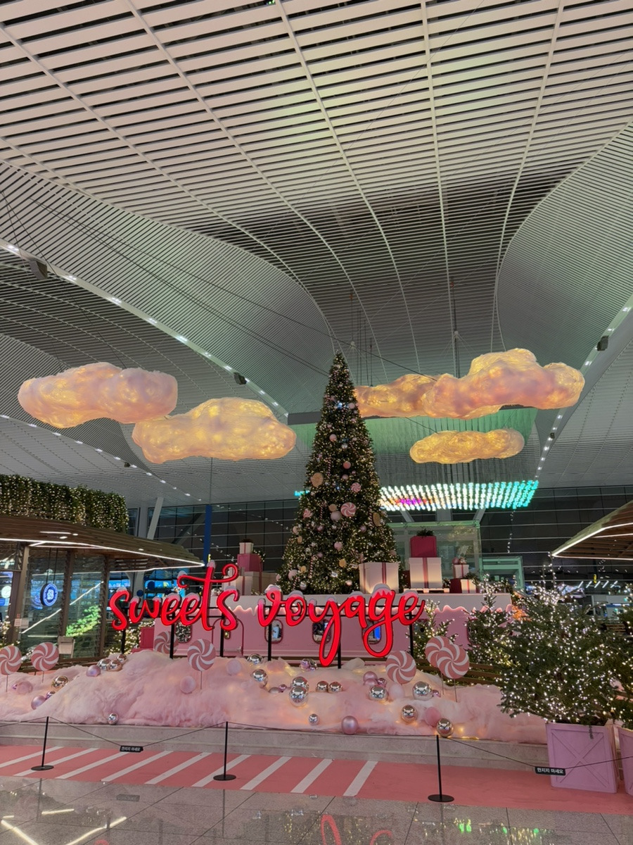 11월 초부터 인천공항은 크리스마스 분위기가 물씬 났다. 대형 트리와 조명으로 장식된 로비 덕분에 연말의 기분을 미리 느낄 수 있었다.