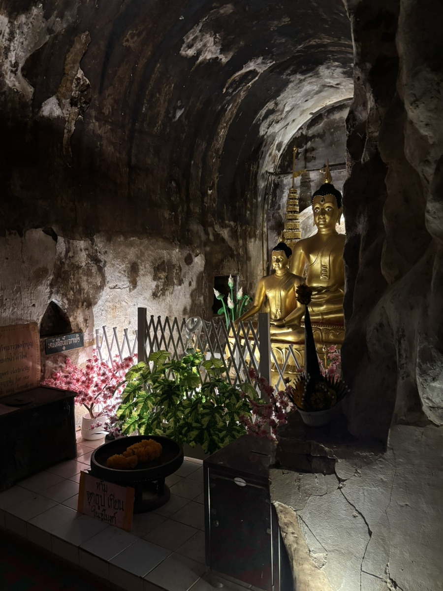 동굴 내부는 미로처럼 구불구불 이어져 있었고, 본당 부처님 상 앞에서 기도를 올릴 수 있었다. 입구 위에는 박쥐가 매달려 있어 살짝 스릴감까지 더해진 장소였음 🦇