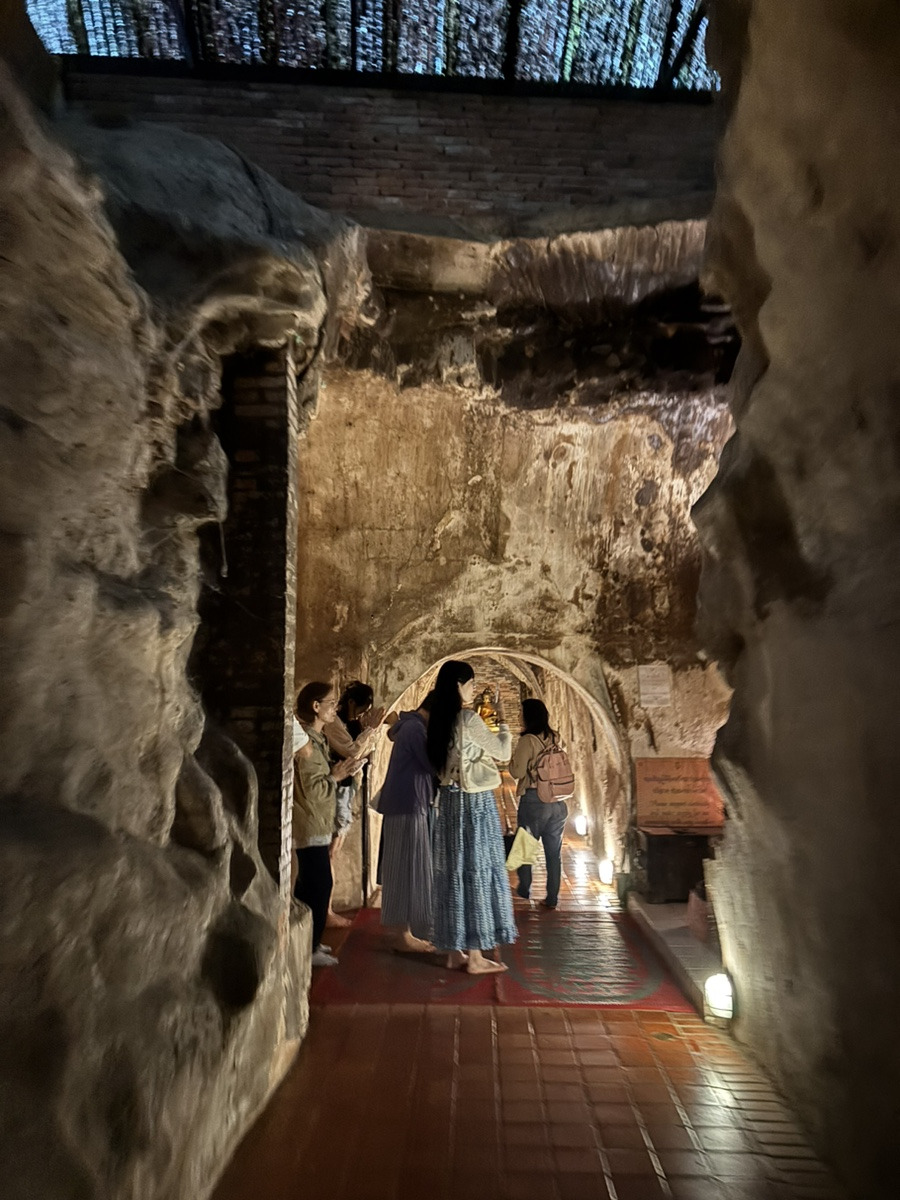도이수텝 가는 길에 위치한 왓우몽 사원은 생각보다 고즈넉하고, 동굴 사원이 인상적인 곳이었다. 마침 비가 쏟아졌지만 기사님이 챙겨주신 우산 덕분에 무사히 관람할 수 있었음 ☔