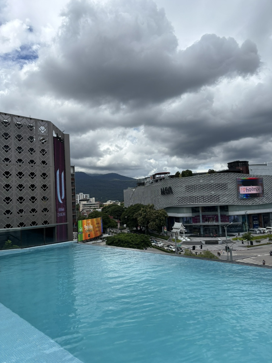 🍹 해피아워(2+1 이벤트)도 진행 중이어서, 수영장에서 칵테일 3잔을 주문해 마셨다. '치앙마이 오로라'가 제일 도수가 높았고, 다른 두 가지는 무난한 맛이었다.