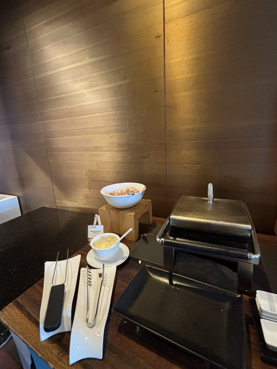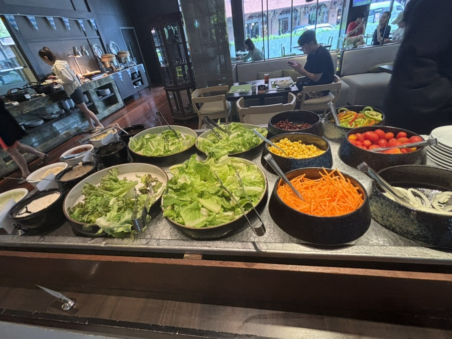 • 🥗 샐러드, 치즈, 오트밀, 요거트, 과일 등 기본 뷔페 구성 충실