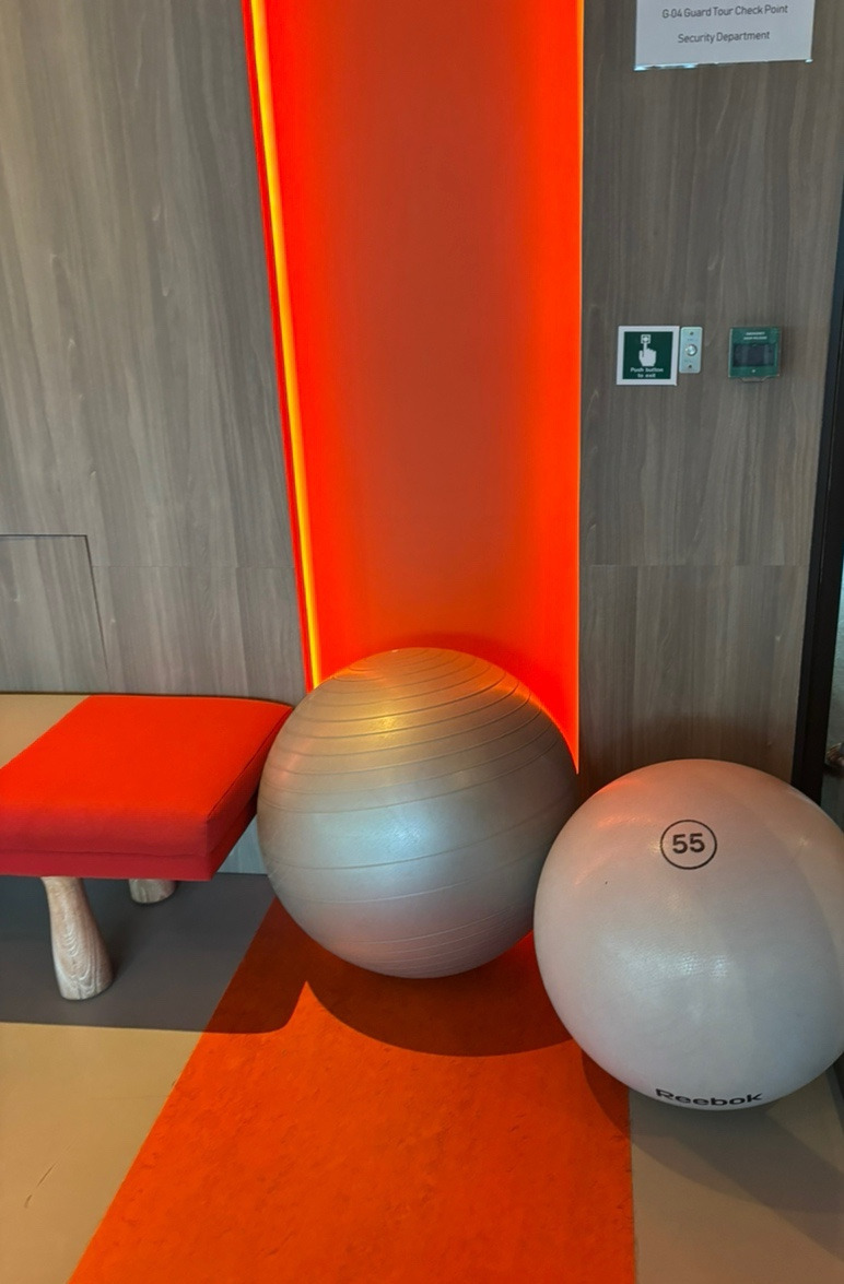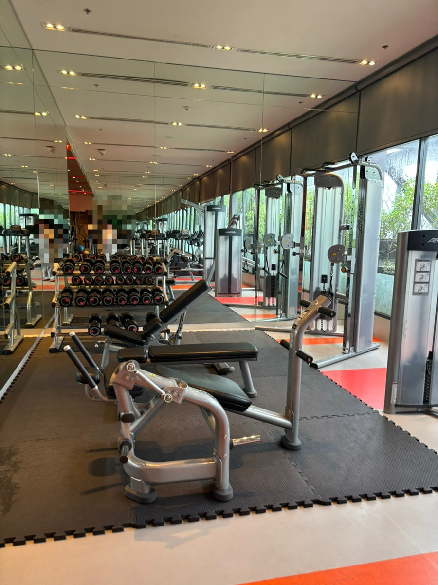 💪 수영장 반대편에 위치한 헬스장은 꽤 넓고 쾌적했다. 러닝머신, 근력운동 기구 등 다양한 기구가 마련되어 있었고, 샤워룸과 사우나도 같이 운영 중이었다 (사우나는 이용객이 있어 사진은 생략).