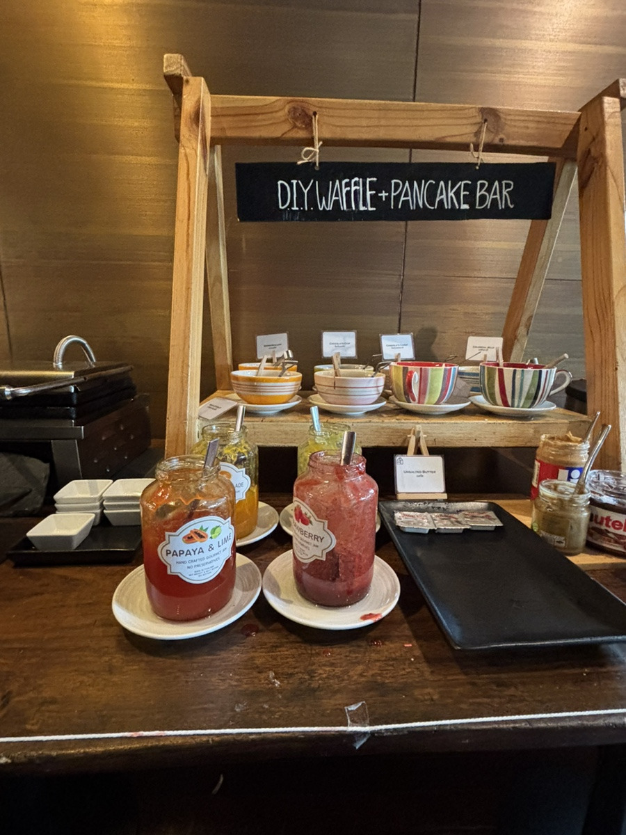 이틀 동안 조식 메뉴 구성이 살짝 바뀌었는데, 크루아상 생지로 만든 크로플이 진짜 맛있었다. 빵을 좋아하시는 분들이라면 식당 뒤편의 베이커리 코너는 절대 놓치지 말 것!