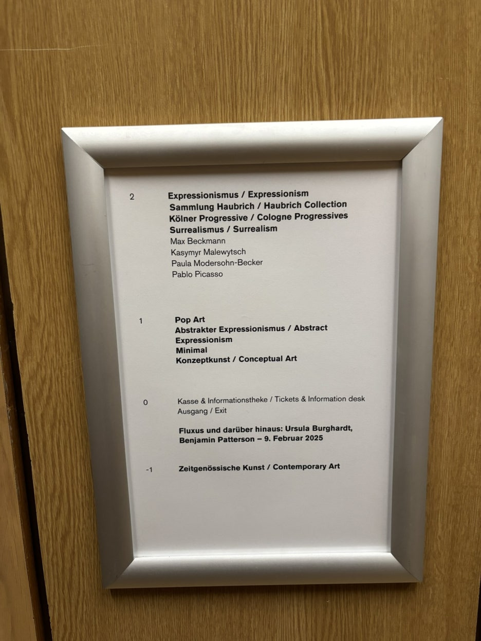 루드비히 박물관은 총 3층으로 나뉘어져 있는데, 3층부터 전시를 관람하면 피카소·몬드리안·달리·로이 리히텐슈타인·앤디 워홀 등 우리가 익히 잘 아는 유명한 현대미술의 거장들을 먼저 만나볼 수 있다. (참고로 독일의 층은 우리나라 층 수에서 -1을 해야하니 참고하시길!)