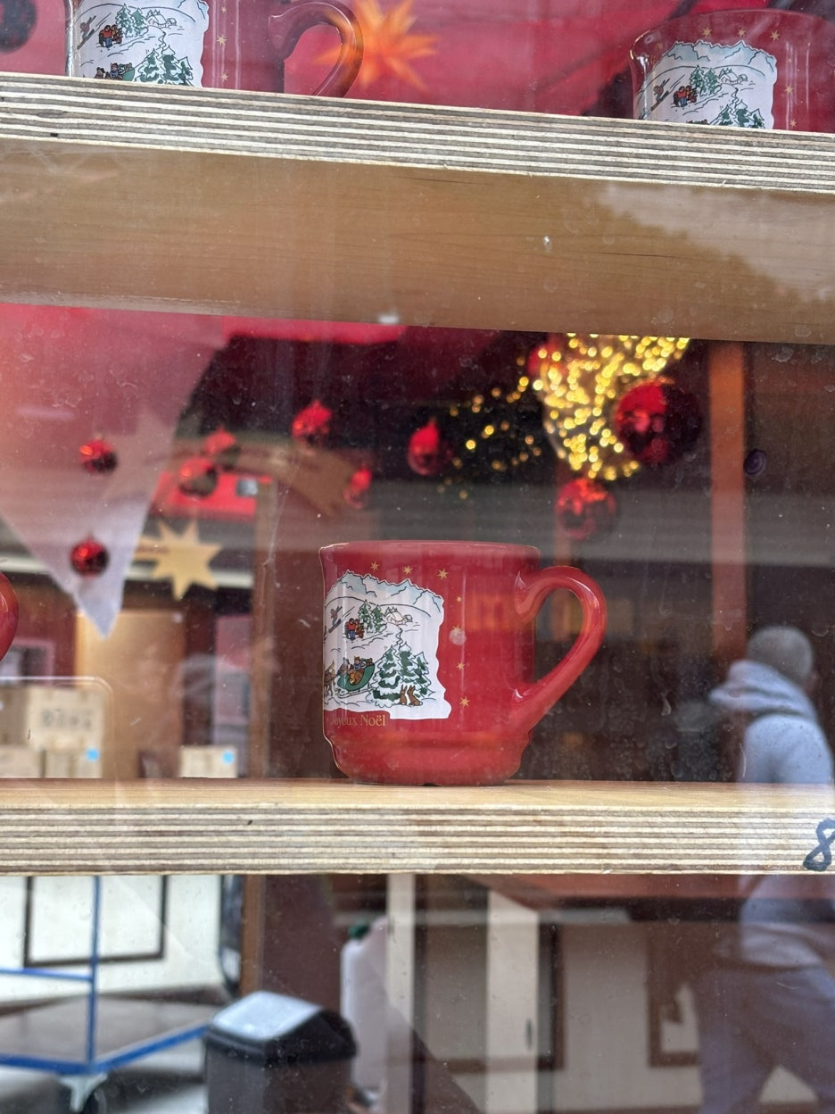 쾰른 중앙역으로 돌아가기 전, 2024 크리스마스 머그컵이 전시된 모습을 보게 되었다. 내가 원했던 빨간색의 글루바인 컵이다..!