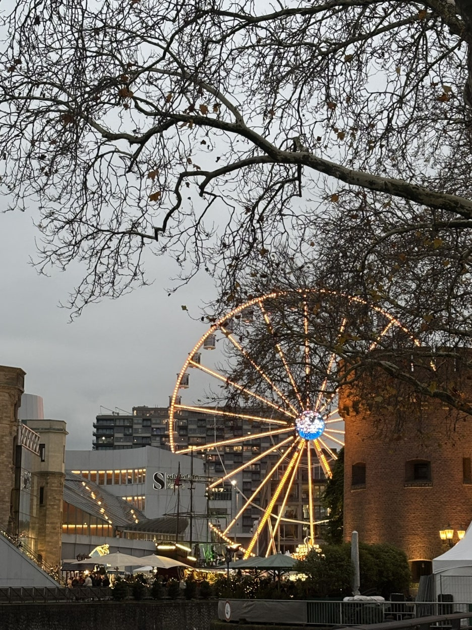 쾰른 일정을 1박2일로 잡아뒀던 터라 크리스마스 마켓을 못보면 어떡하지?.. 했는데 운 좋게 작은 마켓을 볼 수 있었다.(럭키걸 !)오픈한 마켓으로 가기 위해서 라인강을 따라 걸었는데 쾰시맥주가 유명한 도시답게 맥주 바와 앉아서 '호엔촐레른 다리'를 볼 수 있는 휴식공간도 많았다.