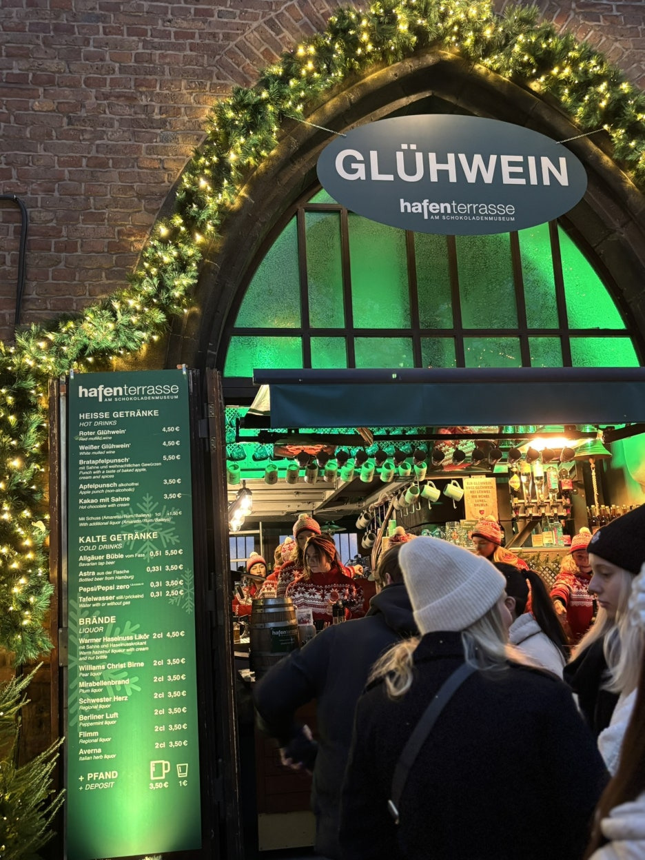 글루바인은 컵 보증금 4유로 + 와인 3유로를 지불하고 마시는 방식. 컵을 반납하면 보증금을 돌려받고, 컵이 마음에 들면 가져가도 된다. 나는 대성당 마켓 한정 빨간 컵을 원했지만, 일정상 이곳에서 판매하는 컵으로 만족해야 했다.