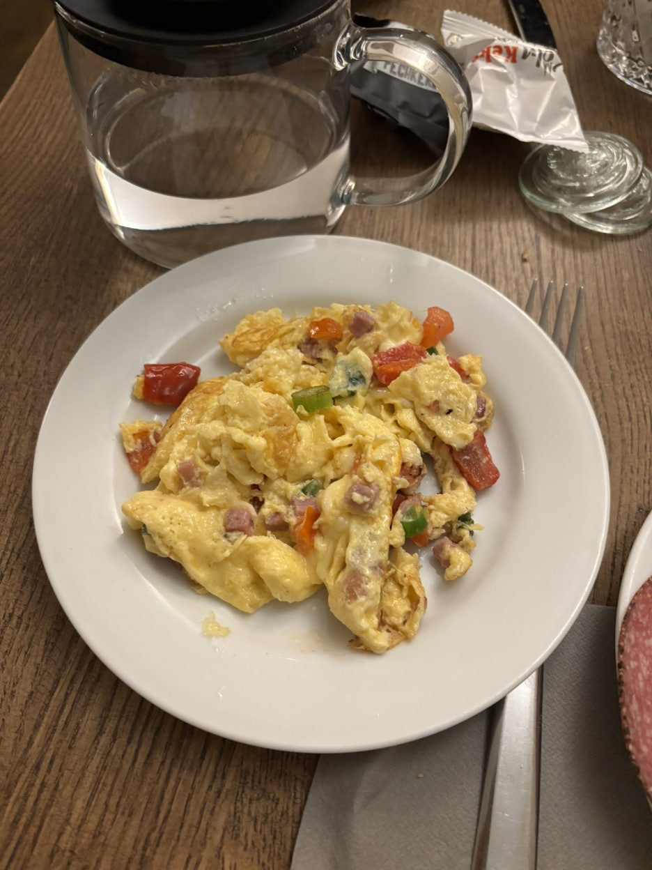 그리고 호텔 돔스피첸 조식은 계란요리도 선택 가능했는데  스크럼블 에그는 그래도 먹을수 있을 것 같아서 하나 주문 해 봄.
