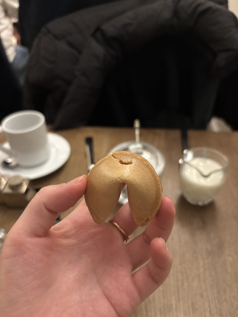 조식의 마무리로 포춘쿠키 2개를 열어보았지만… 독일어 해석 실패로 내용은 미지수 😅