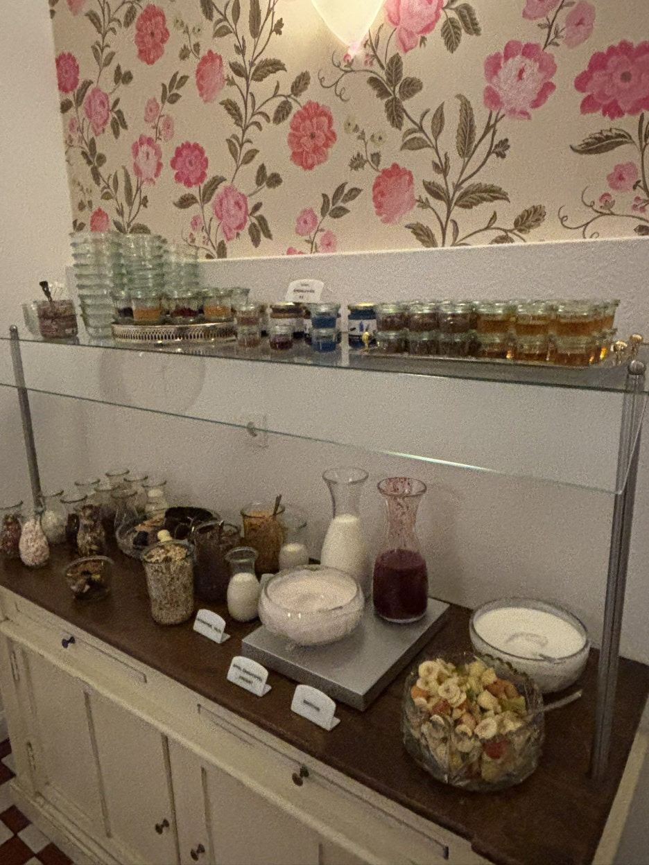 조식은 치즈·햄·하몽·요거트·건과일 등 구성이 풍성했고, 특히 따뜻하게 구워진 빵과 다양한 잼은 인상적이었다.